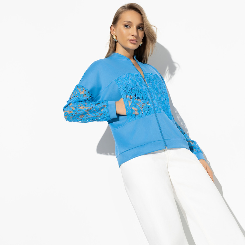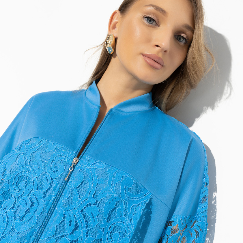 Как кружевные, так и трикотажные бомберы хорошо сочетаются с нарядными платьями, юбками клеш и карандаш. Летом они будут уместно смотреться с джинсовыми шортами, короткими юбками, легкими комбинезонами.