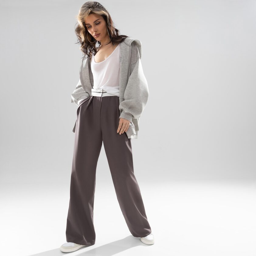 В ассортименте CHARUTTI есть женские брюки на любой вкус: трендовые с акцентными разрезами, широкие трикотажные и классические офисные.